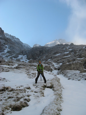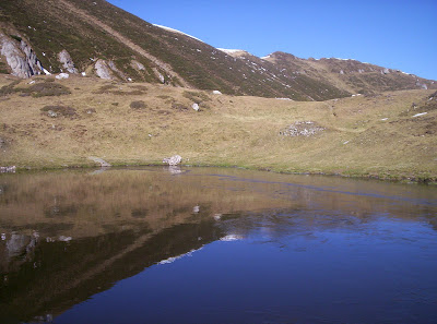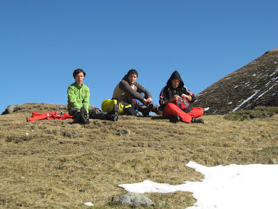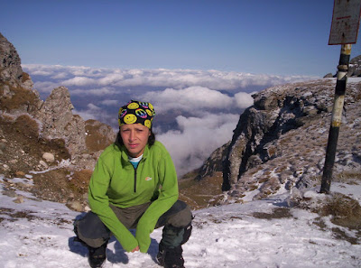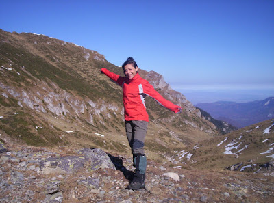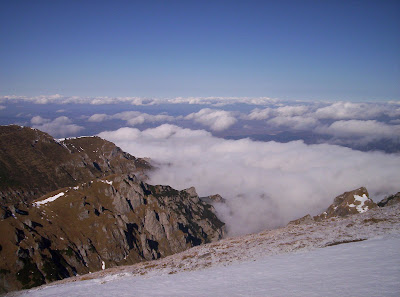 Am aşteptat apoi să vină şi ceilalţi. Timp în care am stat la soare în iarbă, am dat de mâncare căţeluşei şi am privit măreţia care mi se desfăşura în faţa ochilor.Am plecat apoi agale către vârful Omu. Agale pentru că voiam să prelungesc cât mai mult momentele acelea. Era prea frumos, prea frumos ca să găsesc cuvinte. Nu există cuvinte. Sus nu am stat foarte mult. Am fii vrut să coborâm pe Ţigăneşti, sau pe poteca de vară, dar am fost sfătuiţi să nu facem asta, că este multă gheaţă.