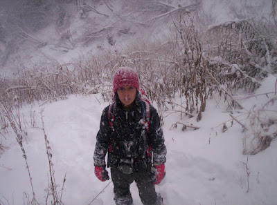 Am mai urcat aproximativ jumătate de oră şi am dat iarăşi de nişte lanţuri. În timp ce eu şi Cătă aşteptam cuminţi să treacă cei din faţa noastră, am fost “spălaţi pe faţă” de o mică avalanşă care a venit de undeva de sus de pe versant, fix în capul nostru. Pentru mine cuvântul a fost : şoc. Stăteam şi mă uitam tâmpită la zăpada care curgea pe noi, nefiind capabilă să reacţionez în niciun fel. Preţ de câteva secunde nu am putut să mă mişc. Cătălin se pusese în fund şi mă apucase de un picior. După ce m-am dezmeticit, m-am întors cu spatele la versant şi am aşteptat să se termine.