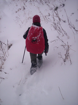 Era potecă bătută aşa că nu eram singurii nebuni. Am plecat voiniceşte pe traseu, veseli şi entuziasmaţi de frumuseţea pe care o dă albul zăpezii oricărui lucru, mai ales muntelui. Nu după mult timp ne-am întalnit cu alţi patru turişti. Aveam energie aşa că i-am depăşit. Aveam ritm foarte bun şi în scurt timp ne-am mai întâlnit cu încă doi.