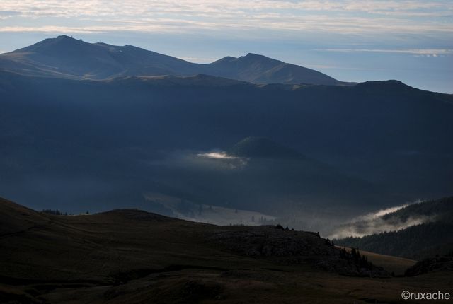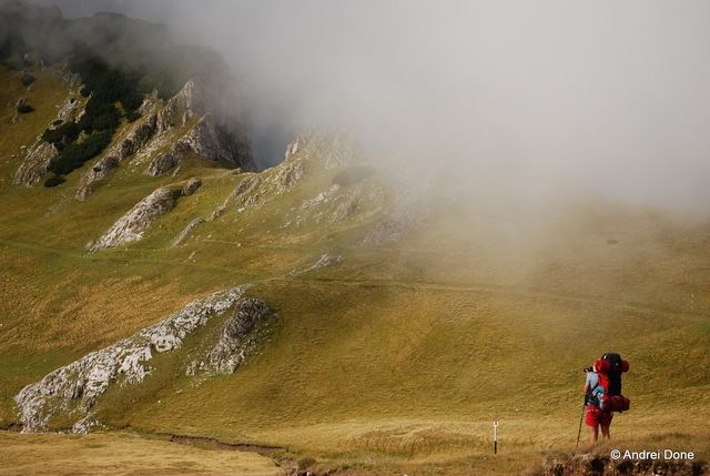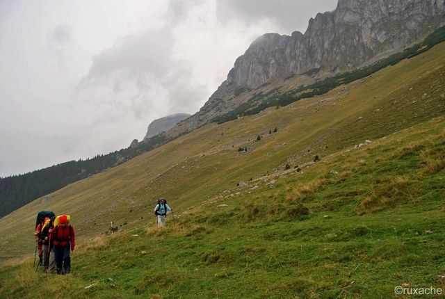 Trecem printre vaci şi căluţi, ocolim stânele cu căţeii aferenţi şi înaintăm prin ploaie. Atmosfera e cumva apăsătoare. Ploaia nu conteneşte şi cumva mă apucă nostalgia. Vreau soare, cald, întins pe iarbă. Chiar s-a dus? Măcar de-ar veni zăpezile, cu troiene şi foc în sobă la cabană, supă la primus în veranda cortului, când îngheaţă fermoarul şi bocancii scârţâie pe zăpada bocnă.