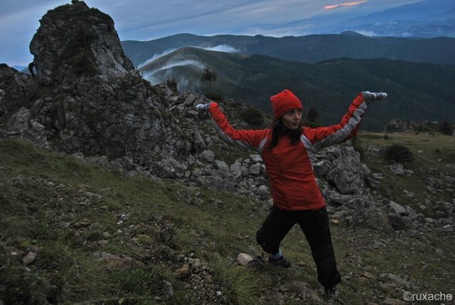La apus, odată ce se opreşte şi Doamna ploaie, mergem să admirăm Craiul şi aburii din munţi şi ne cocoţăm care pe ce bolovan nimereşte.