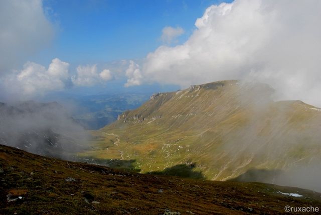 Şi nu prea ne lasă. Într-un moment de respiro parcă se dau câţiva nori la o parte şi ne arată un peisaj de vis. Ca mai apoi să se strângă iar grămadă deasupra noastră şi să ascundă hăurile. Nu ştiu ce e cu Balaurul ăsta şi când l-am supărat eu , însă nici de data asta nu mă primeşte cu soare, ci cu la fel de multă ceaţă.