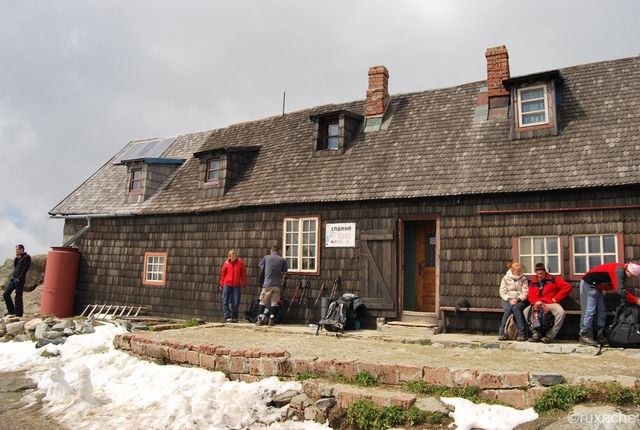 Ajungem în sfârşit la refugiu. E din ce în ce mai frig. Punem de-o masă copioasă înăuntru şi de-o palincă şi mai copioasă afară pe verandă. Nu ştiu dacă e din cauza glumelor sau a licorii magice, însă nu mai simţim deloc frigul. Stăm afară şi ne hlizim la poveşti care mai de care mai caraghioase şi amuzante din munţi şi de pe la cabane. Şi-apoi mai mâncăm un pic. Dulceaţa de zmeură cumpărată din Moeciu face deliciul serii, la fel şi ananasul cărat de Dragoş.