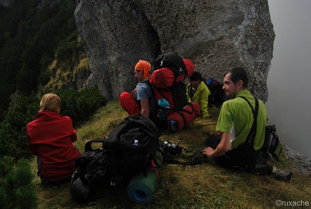 Popasul e luuuung. Mâncăm o ciorbă, o ciocolată, bem nişte ceai şi rugăm norii să ne lase şi pe noi să vedem ceva pe Creasta Balaurului.