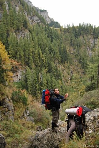 Superbe culorile de toamna! E nevoie de coarda, just in case, pe vale? Nu de alta dar ma gandesc ca iarba inghetata si stanca umeda ar putea pune probleme.
