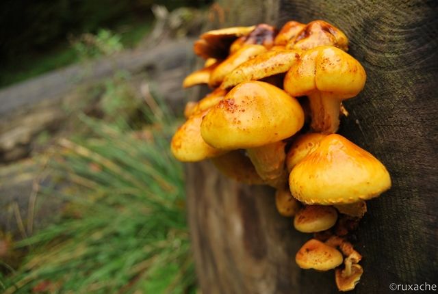 La ore de-astea matinale (oarecum) pădurea pare că încă nu s-a trezit după o noapte friguroasă, aşa că mergem cuminți, să nu cumva s-o deranjăm. E ca în poveştile din bunici. O atmosferă calmă și cumva gravă de loc de când lumea. Copaci bătrâni cu trunchiurile îngreunate de povești, înalţi şi cocoşaţi de vreme, răzbat printre crengi şi străpung ceaţa spre creste. Ciuperci mici şi colorate răsar după fiecare frunză ruginită de octombrie, muşchiul verde crud încă mai rezistă la fel ca-n primăvară. E aşa, cum ar spune poetul, o feerie, e o explozie de culoare și parcă de căldură, deși pădurea se pregătește de somn. Da, e ciudat, dar parcă uneori e mai vie toamna decât primăvara. Şi încă nu s-au îmbrăcat în portocaliu zadele.