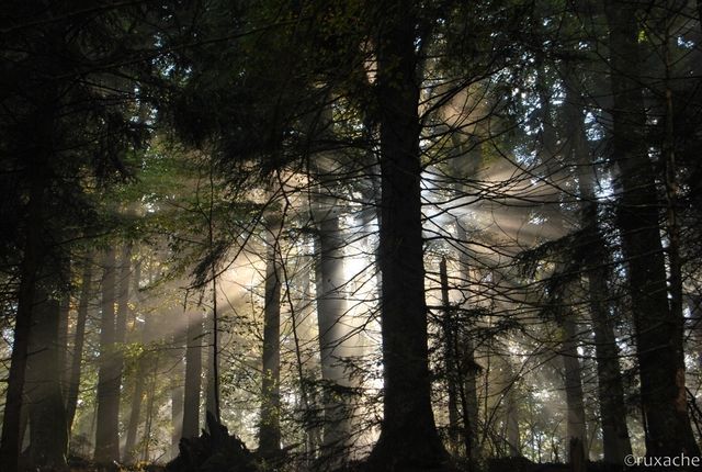 Combinatia de ceata+soare+padure naste cele mai ireale poze! Bravo bai!